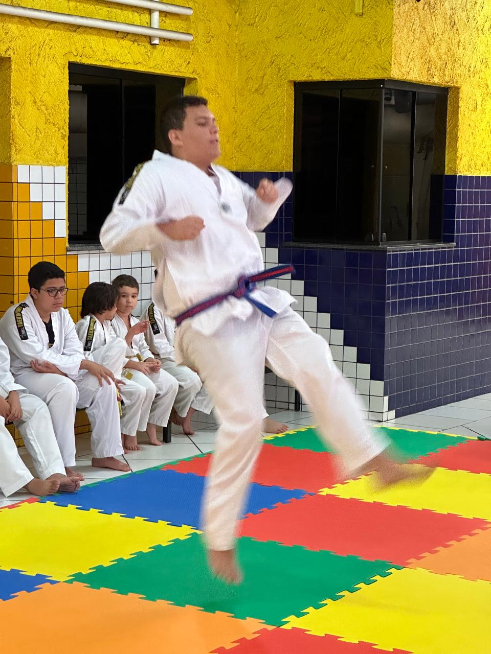 O Taekwondo é uma arte marcial dinâmica e envolvente, reconhecida por sua ênfase em chutes acrobáticos e técnicas de mãos precisas. As faixas coloridas simbolizam o progresso e o nível de conhecimento do praticante, representando não apenas evolução técnica, mas também crescimento em autocontrole e perseverança.