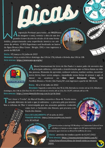 Horário: Segunda a sexta-feira, das 9h as 22h. Entrada no evento ate as 21h, Sabados e